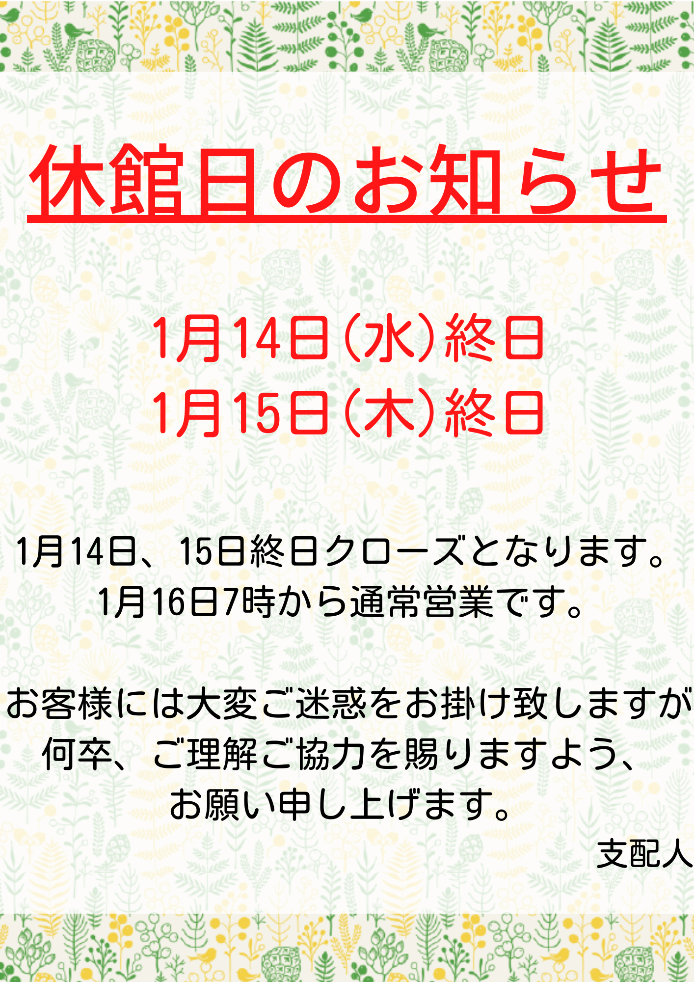 平素より、おふろcaféかりんの湯をご利用いただき誠にありがとうございます。